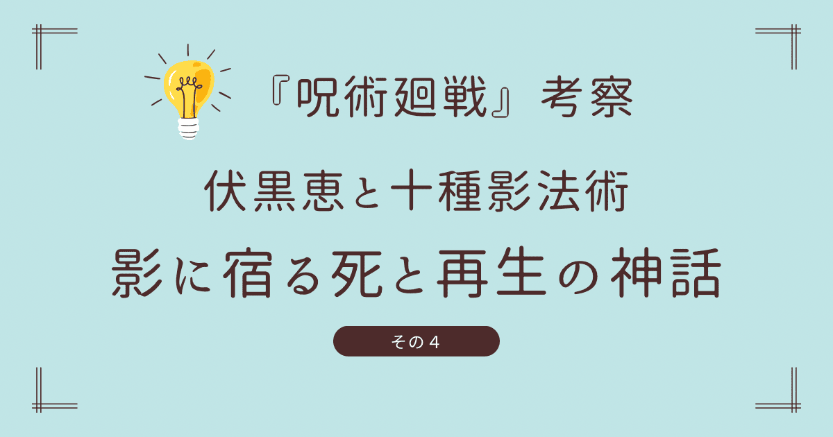 伏黒恵の「十種影法術」は、単なる戦闘技ではなく、日本神話の「十種神宝」や「イザナミ・イザナキ伝承」を現代的に再構築した呪術といえます。