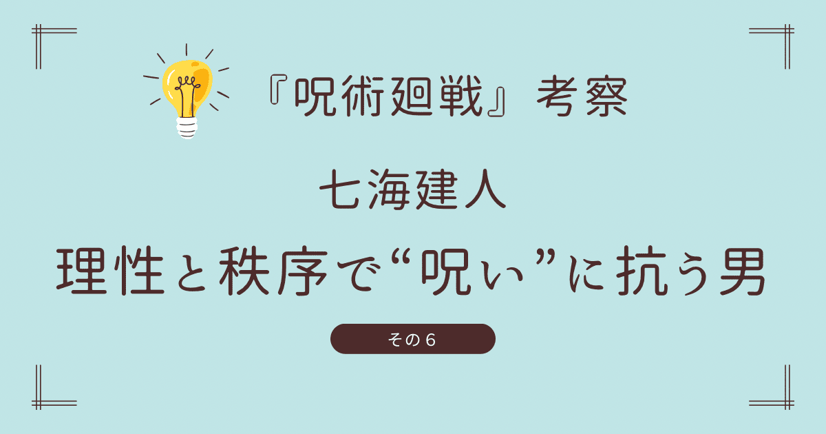『呪術廻戦』考察#6|七海建人 ― 理性と秩序で“呪い”に抗う男 (Jujutsu Kaisen Analysis: Kento Nanami — A Man Fighting Curses with Reason and Order)