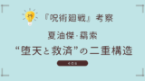 関連記事 -> 『呪術廻戦』考察#14|渋谷事変は“神の死”だった? ― 夏油傑と真人が描く終末論 (Jujutsu Kaisen Analysis: Shibuya Incident — Geto and Mahito’s Apocalypsed)