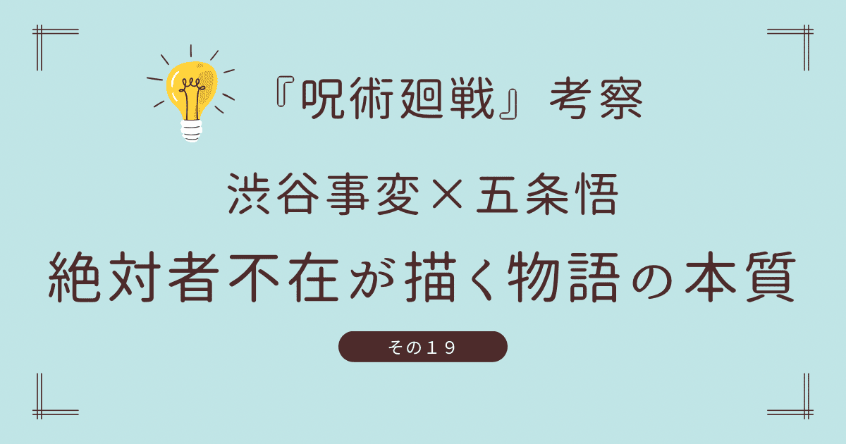 『呪術廻戦』考察#19|渋谷事変 五条悟封印の考察 ― 絶対者不在が描く物語の本質 (Jujutsu Kaisen Analysis: Shibuya Incident — Satoru Gojo Sealed  in the Shibuya Incident)