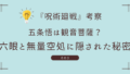 このような歴史的背景を知っていると、『呪術廻戦』の中の何気ないセリフや設定にも深みを感じられます。