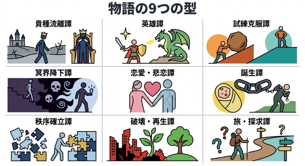 ここまで、創作でよく使われる9つの物語類型を紹介してきました。