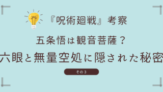 『呪術廻戦』五条悟のモチーフを徹底考察。観音菩薩との共通点や「六眼」「無量空処」の意味を解説し、慈悲と悟りに満ちた彼の強さと孤独に迫ります。